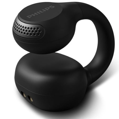 Aproveite áudio nítido e conforto o dia todo com os fones de ouvido abertos True Wireless que se encaixam na orelha. Cada fone se prende levemente, mas com segurança, enquanto o design aberto permite que você ouça o mundo ao seu redor junto com sua música.