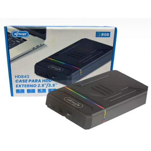 Case HD Externo 3,5" Sata/USB Preto com RGB Knup