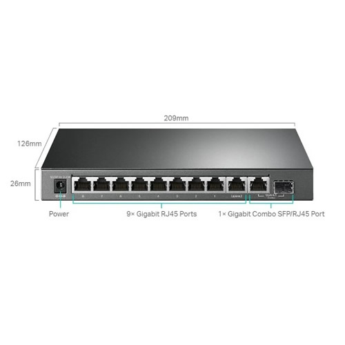 Switch 10P 10/100/1000Mbps 8P POE + 1 Slot SFP Easy Smart Tp-Link