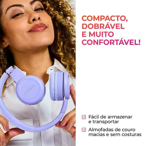 Headphone Aiwa HP-03-P Bluetooth c/ Microfone Roxo